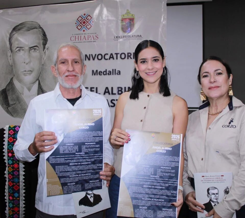 Estado Presentan convocatoria para le entrega de la medalla “Ángel Albino Corzo Castillejo” *Las postulaciones serán del 16 al 30 de enero de cada año en la oficialía de partes del Poder... enero 6, 2026